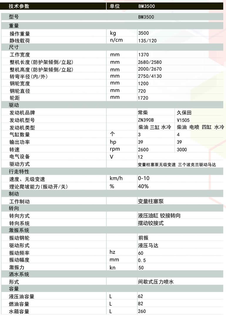 ● 進口液壓變量泵和定量馬達,無級變速,前后行走