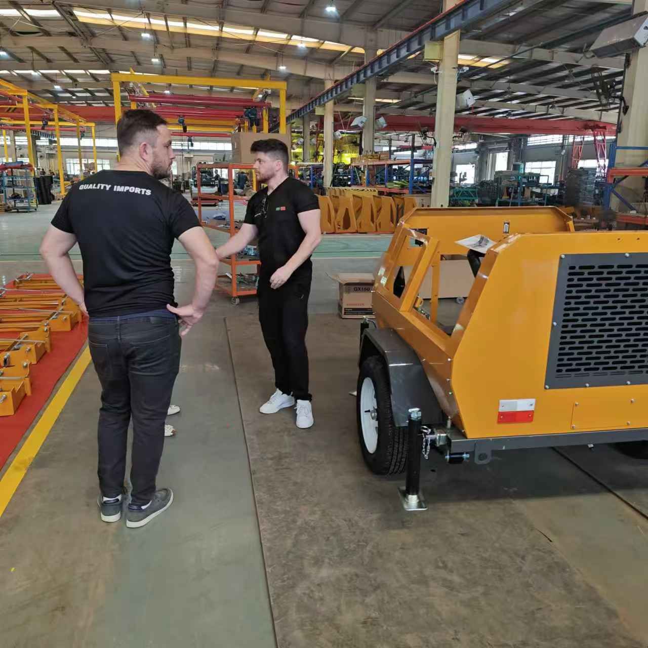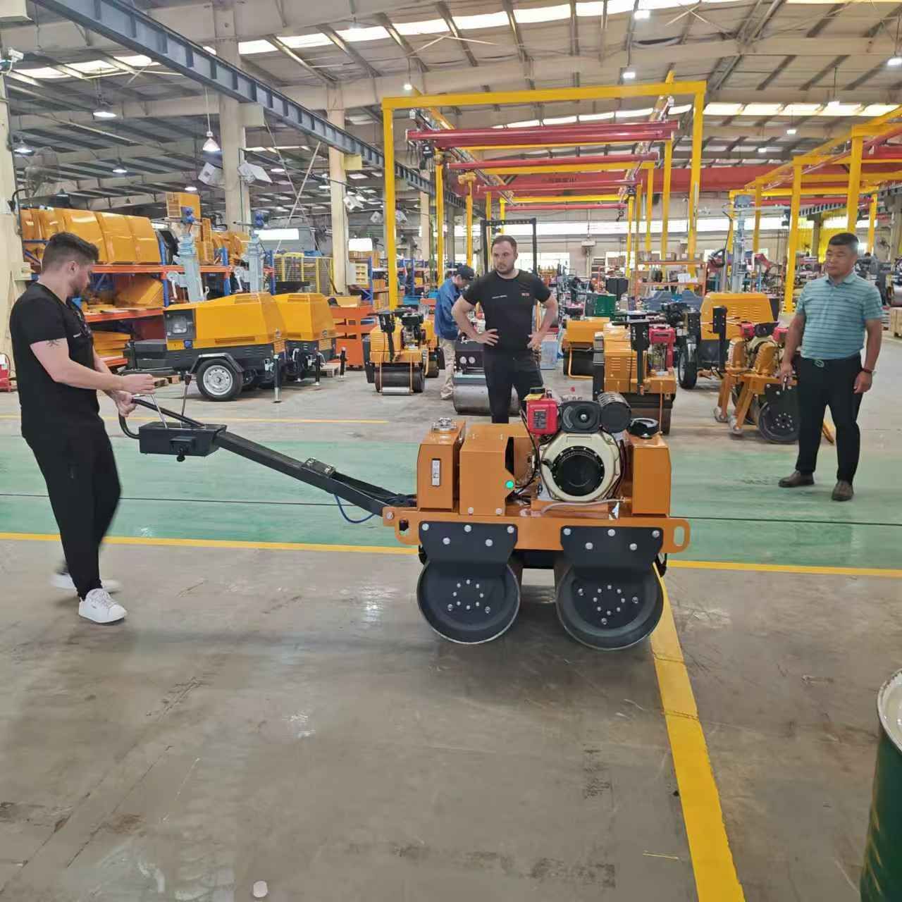 某國(guó)外客戶來(lái)我廠參觀考察,在工作人員的陪同下,參觀了生產(chǎn)車(chē)間與產(chǎn)品展廳,對(duì)我廠生產(chǎn)的小型壓路機(jī)、移動(dòng)照明車(chē)、平板夯等產(chǎn)品贊不絕口,詳細(xì)向業(yè)務(wù)人員了解各個(gè)型號(hào)的配置與參數(shù),達(dá)成合作意向